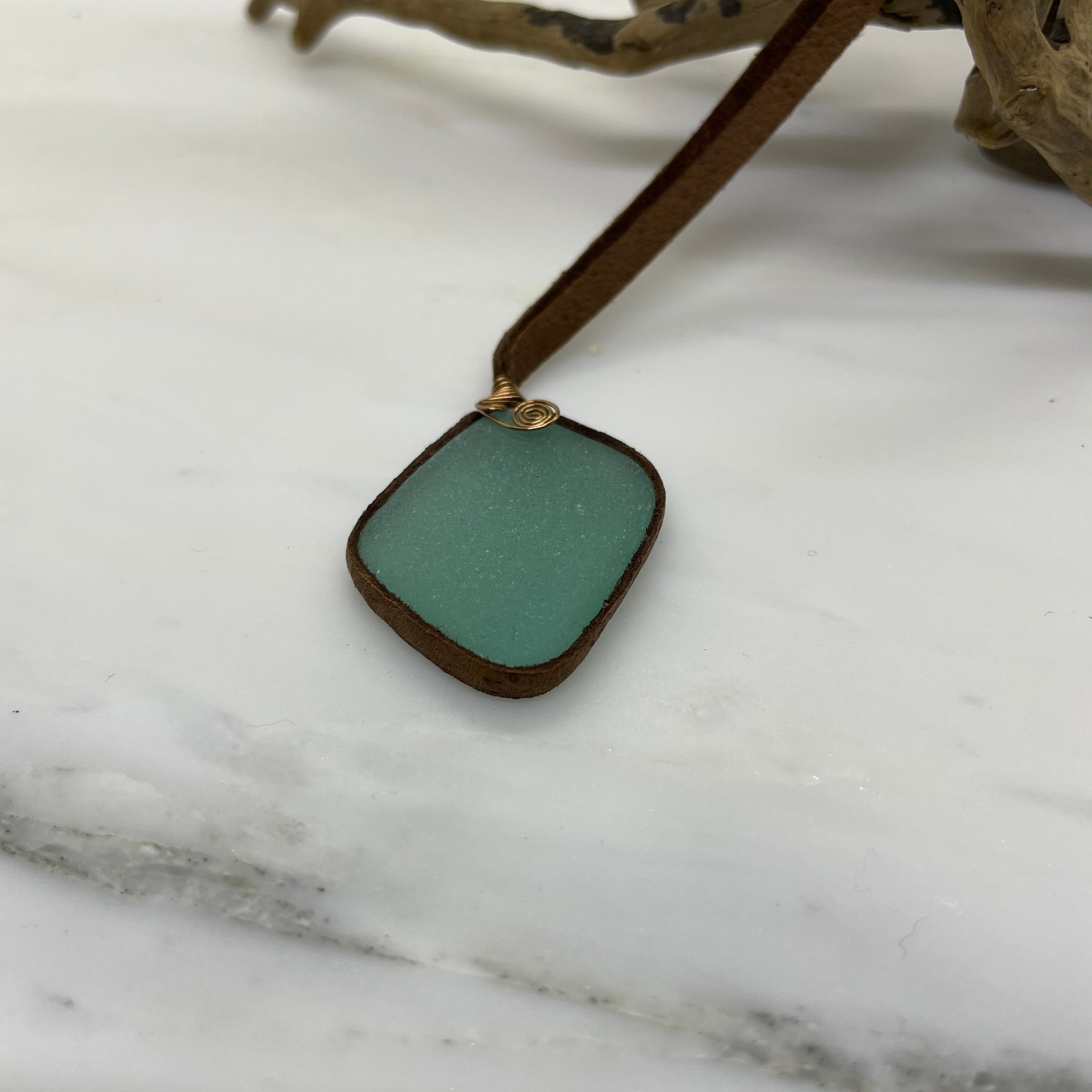 シーグラスをスエードコードに包んでいるさざなみネックレスは女性にも男性にも人気です♪